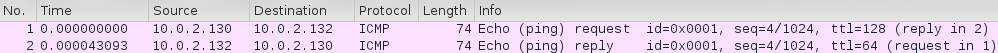 輸入Kali IP(10.0.2.132),Windows目標機(10.0.2.130)將會送icmp request給本機